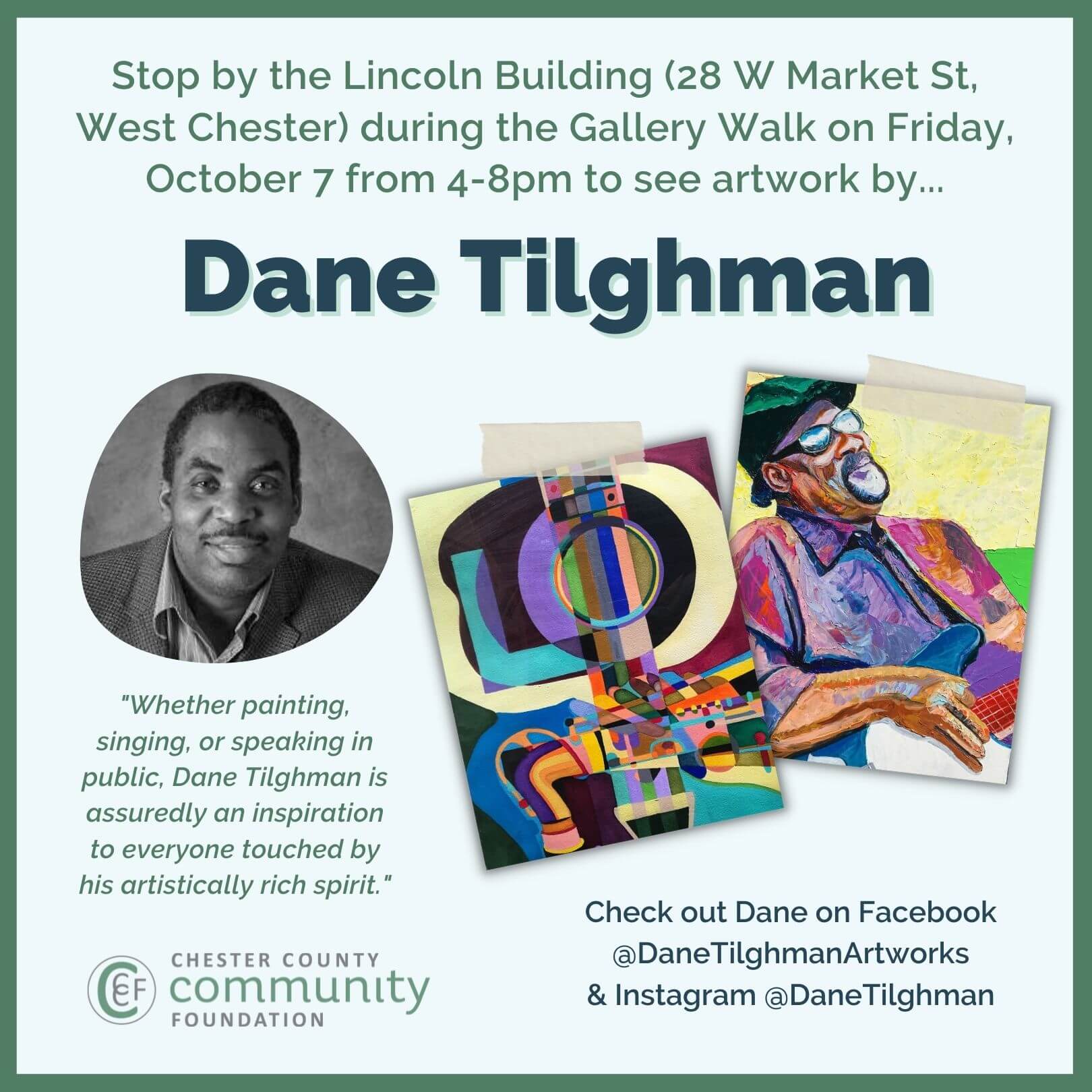 Stop by the Lincoln Building (28 W Market St, West Chester) during the Gallery Walk to see artwork by three local artists.