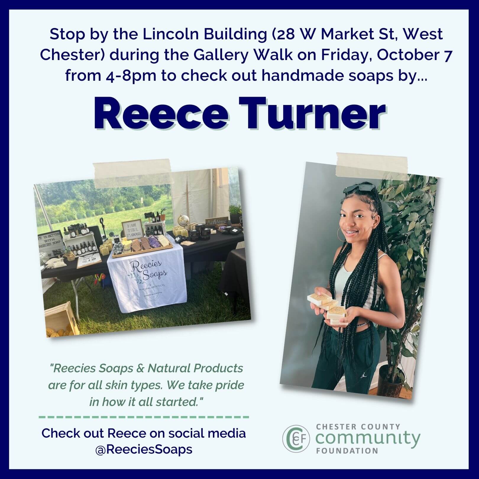 Reecies Soaps & Natural Products was birthed in 2017 when founder Reece Turner suffered from eczema. She and her parents went on a quest to find all natural products that would help her on her journey. As they researched, they found that many suffer from the same skin condition. As a result, Reece suggested she start making her own soap, which ultimately helped soothe her eczema.